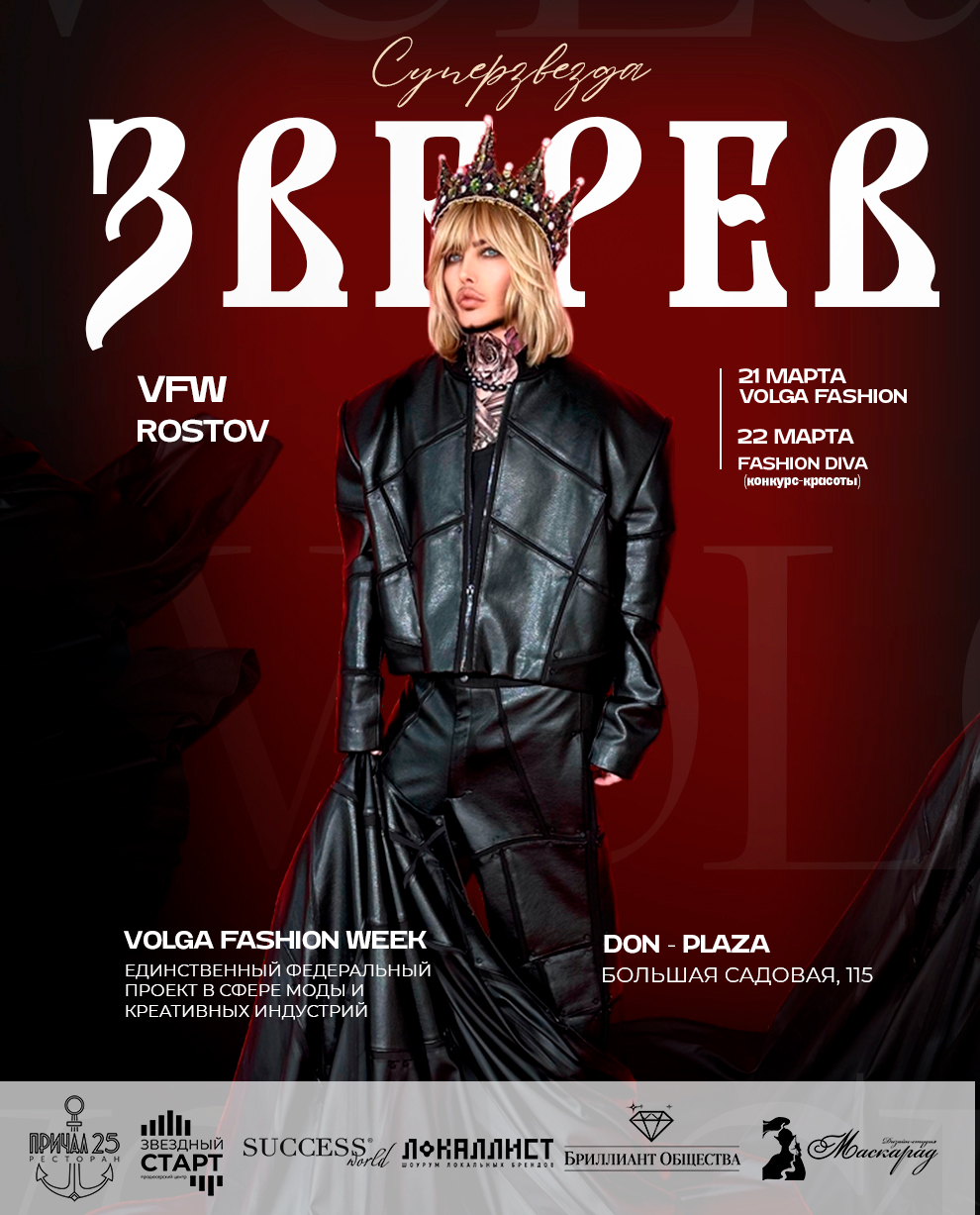 Приглашенная суперзвезда Volga Fashion Show 2026 — чемпион мира и абсолютный чемпион Европы, король гламура Сергей Зверев проведет на шоу два дня. 21 марта он откроет показ, выступит для зрителей и в финале вечера назовёт лучших дизайнеров, а 22 марта станет председателем жюри конкурса «Fashion Diva» и вручит корону каждой из участниц.