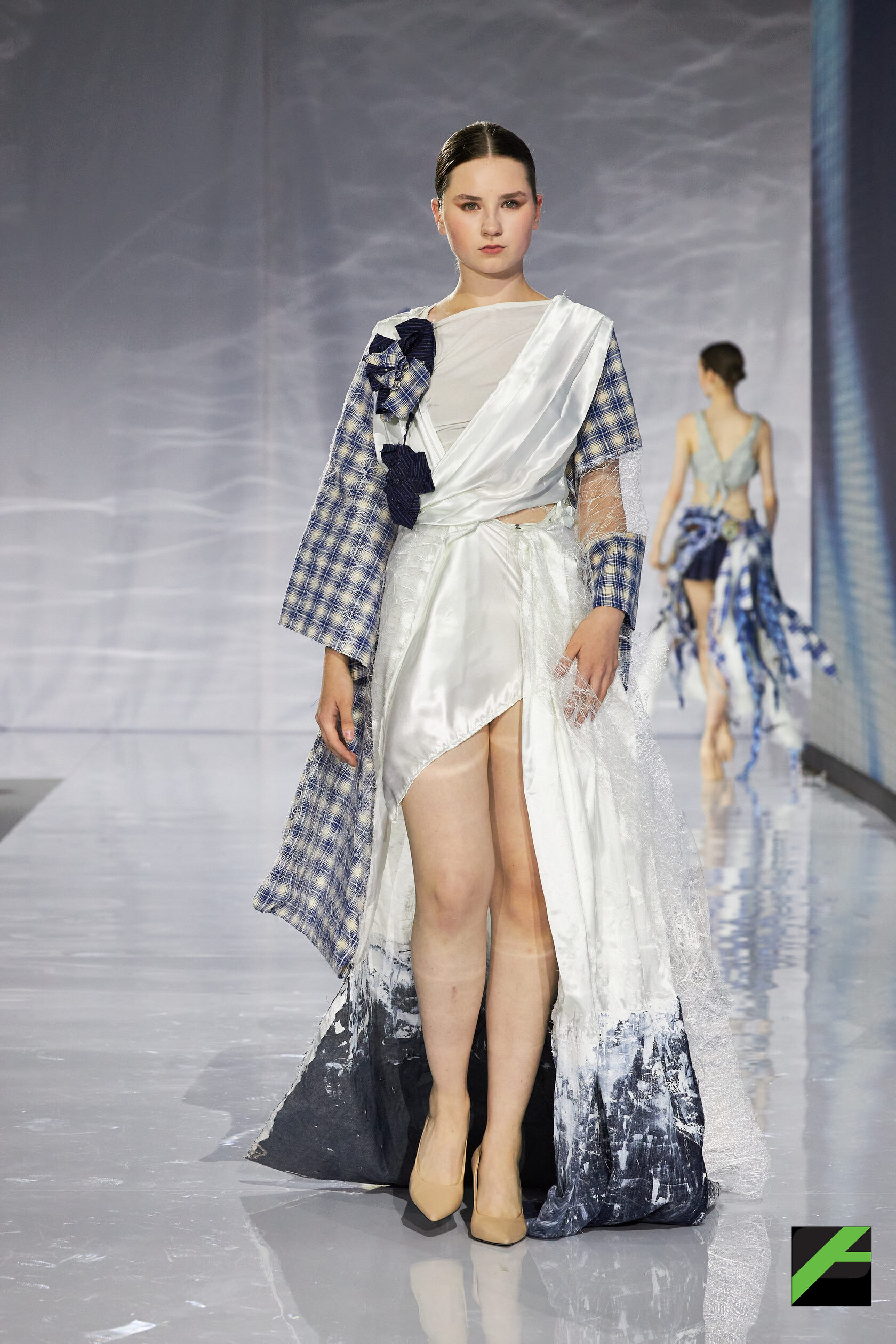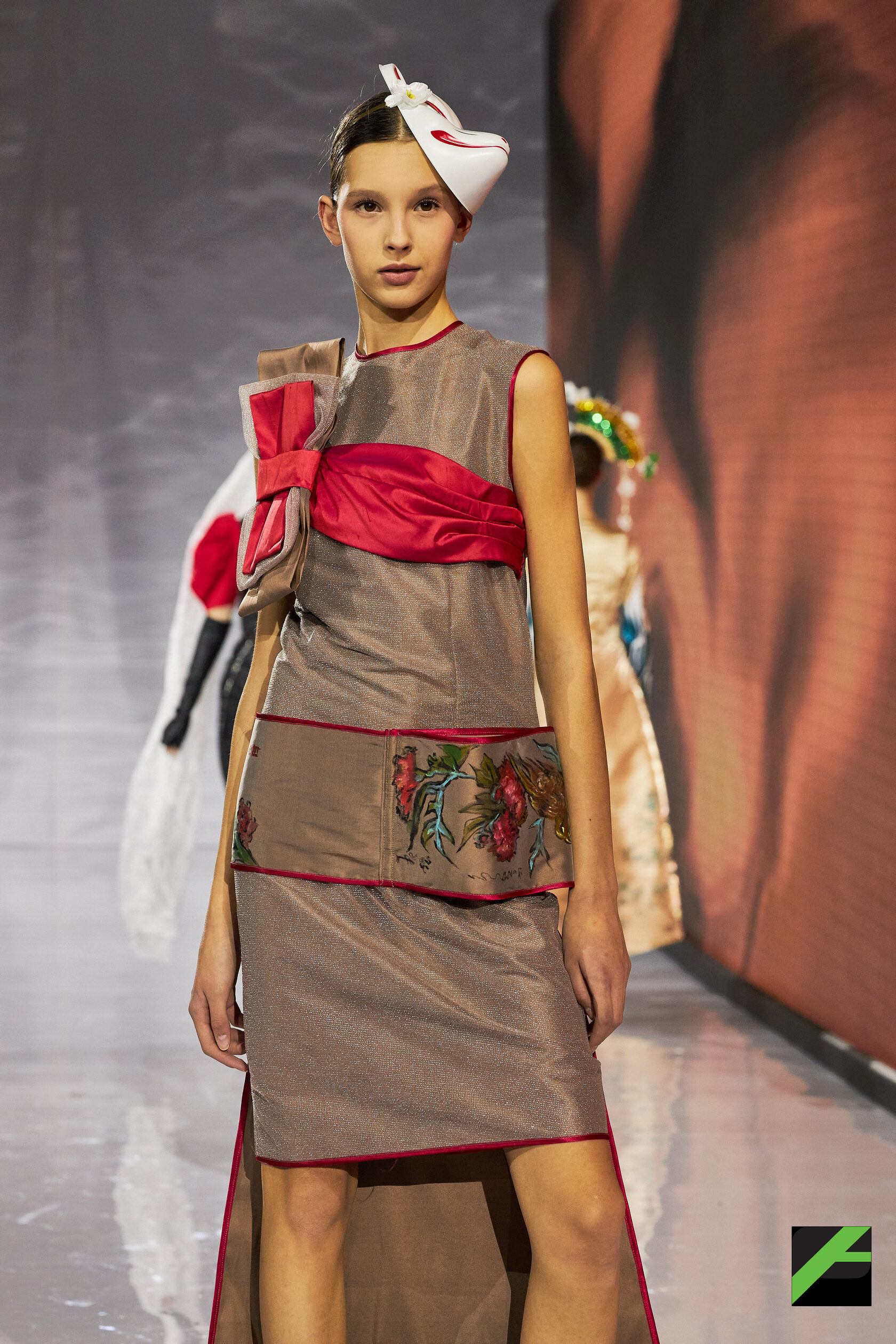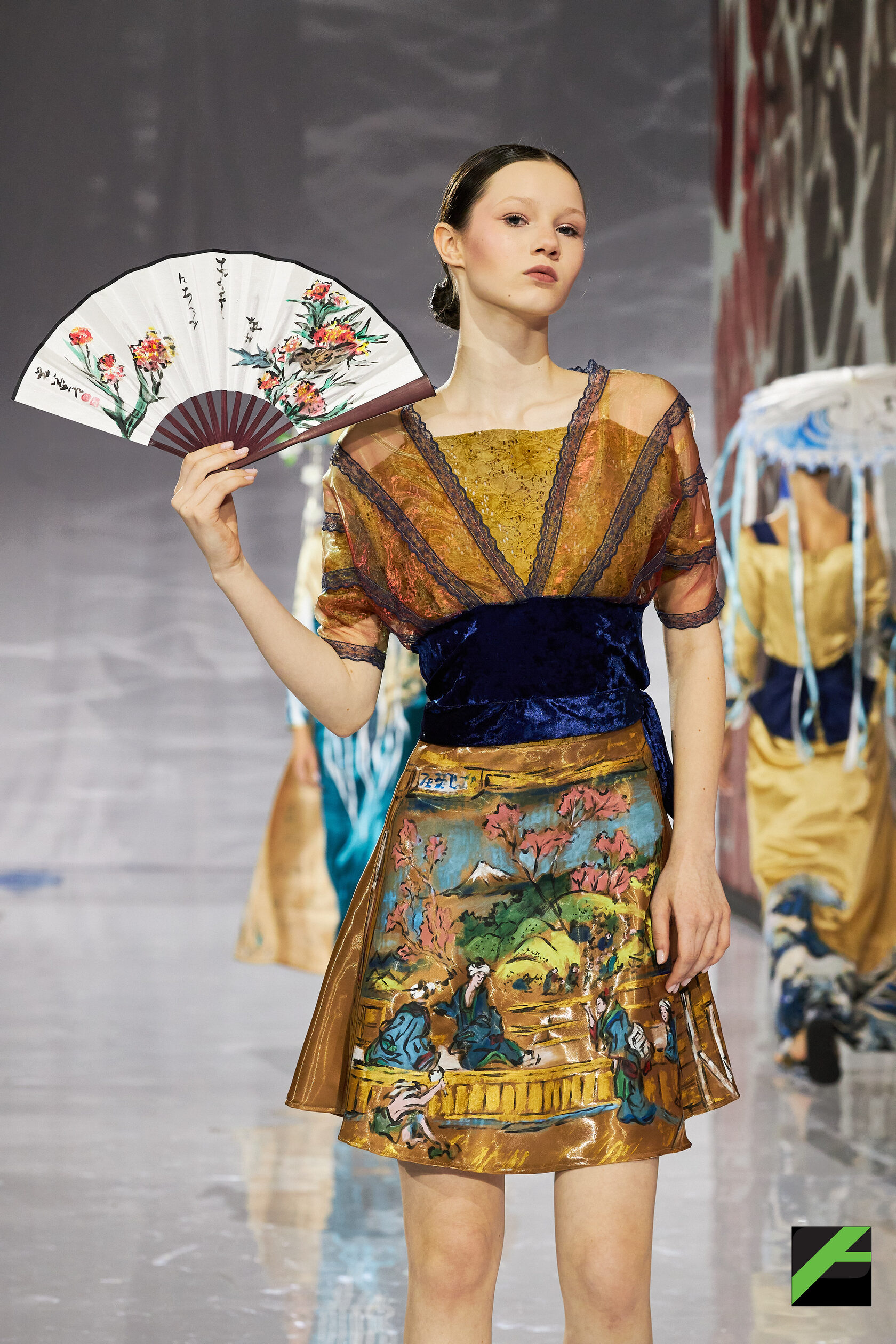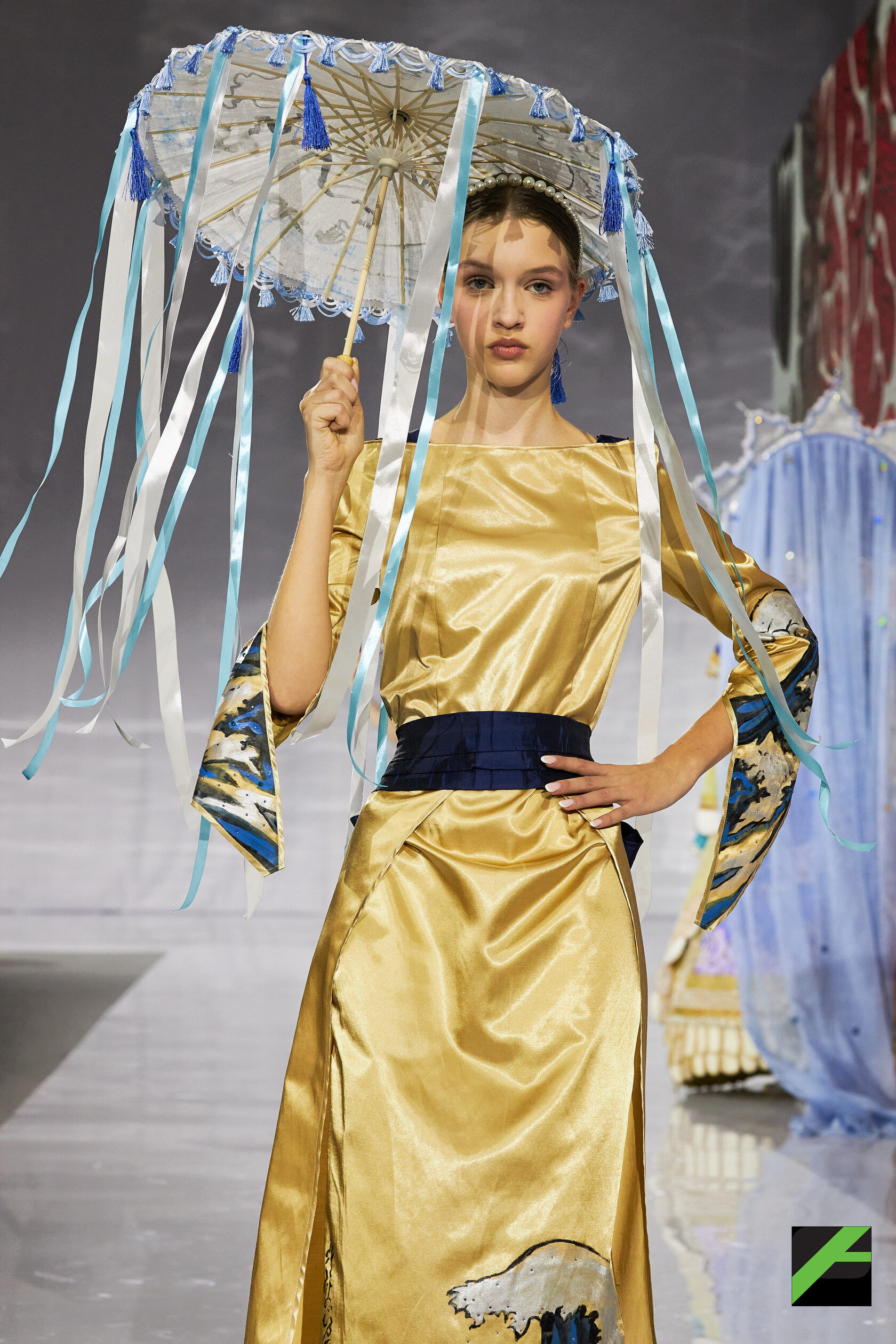 Публика увидела работы самых разных авторов и брендов. Среди них – «Morpheus» от китайского бренда «СюнрУ» и студентки СПбГУПТД, петербургской художницы Лизы Анисимовой, представляющий собой уникальный синтез культурных кодов.