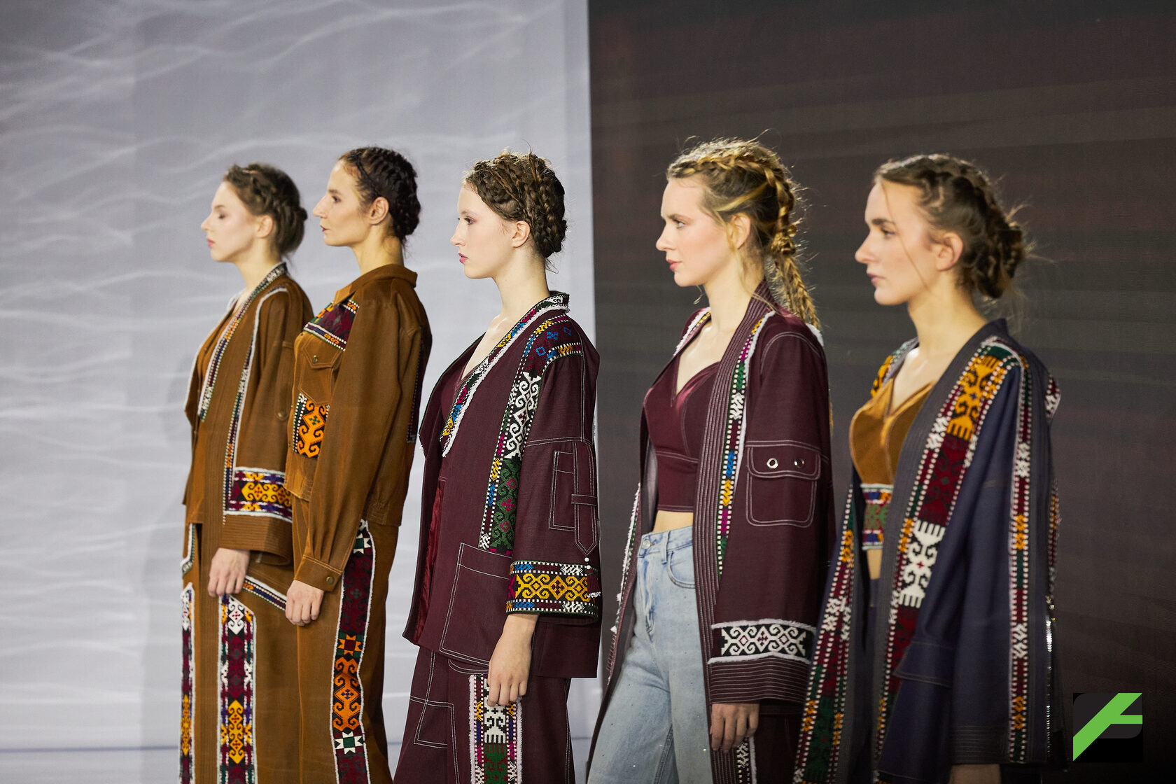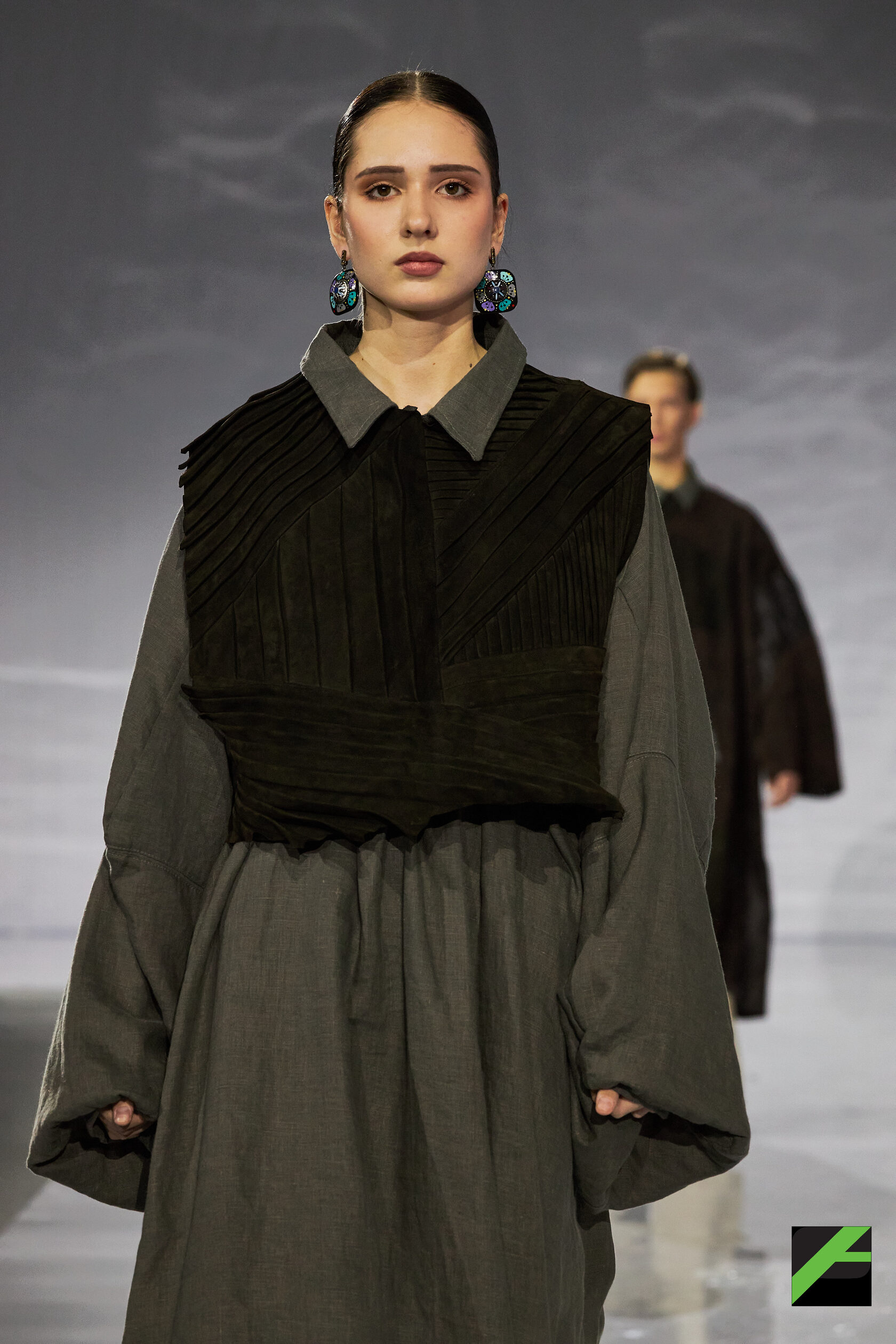 Яркое впечатление произвела коллекция «Моя земля» Анны Сергуновой-Козыревой - рукотворный манифест, сотканный из нитей памяти, артизанальная одежда, в которой дыхание традиций встречается с ритмом современности.